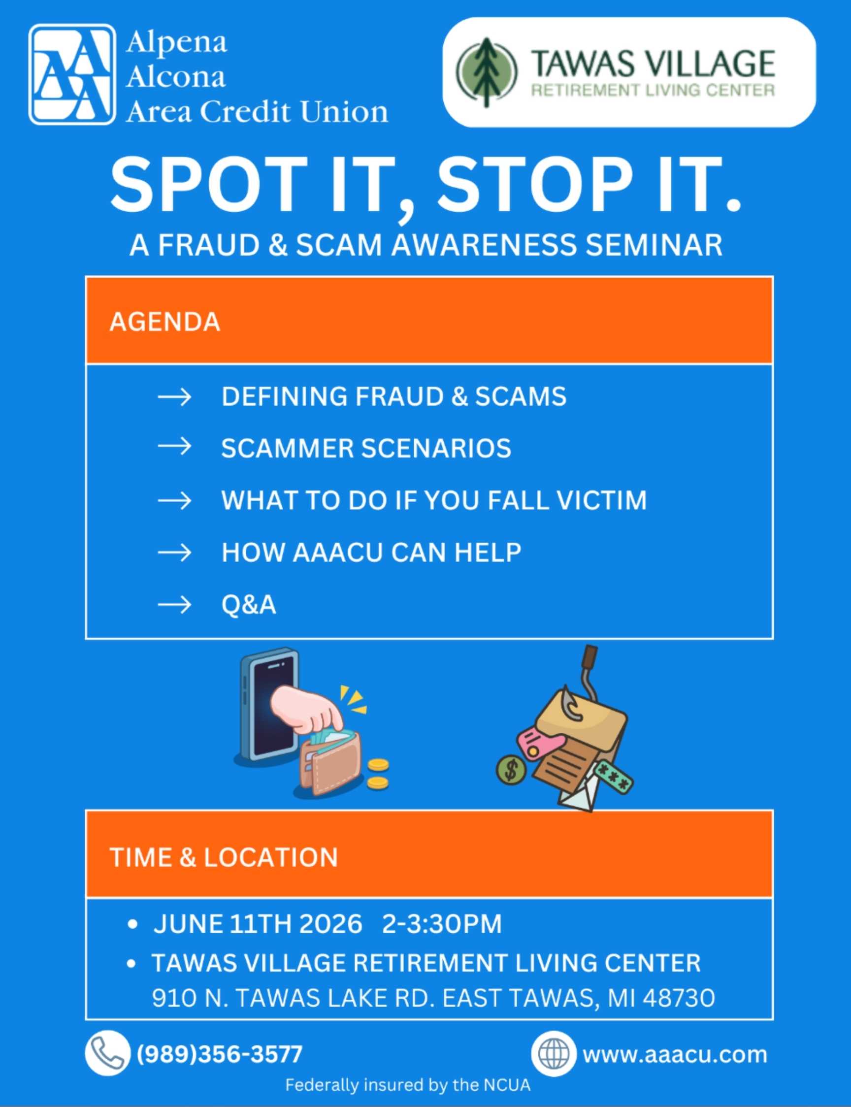 Fraud and scams are becoming more sophisticated—and more common. That’s why Alpena Alcona Area Credit Union (AAACU) is partnering with Tawas Village Retirement Living Center to host an educational seminar focused on helping the community stay protected.